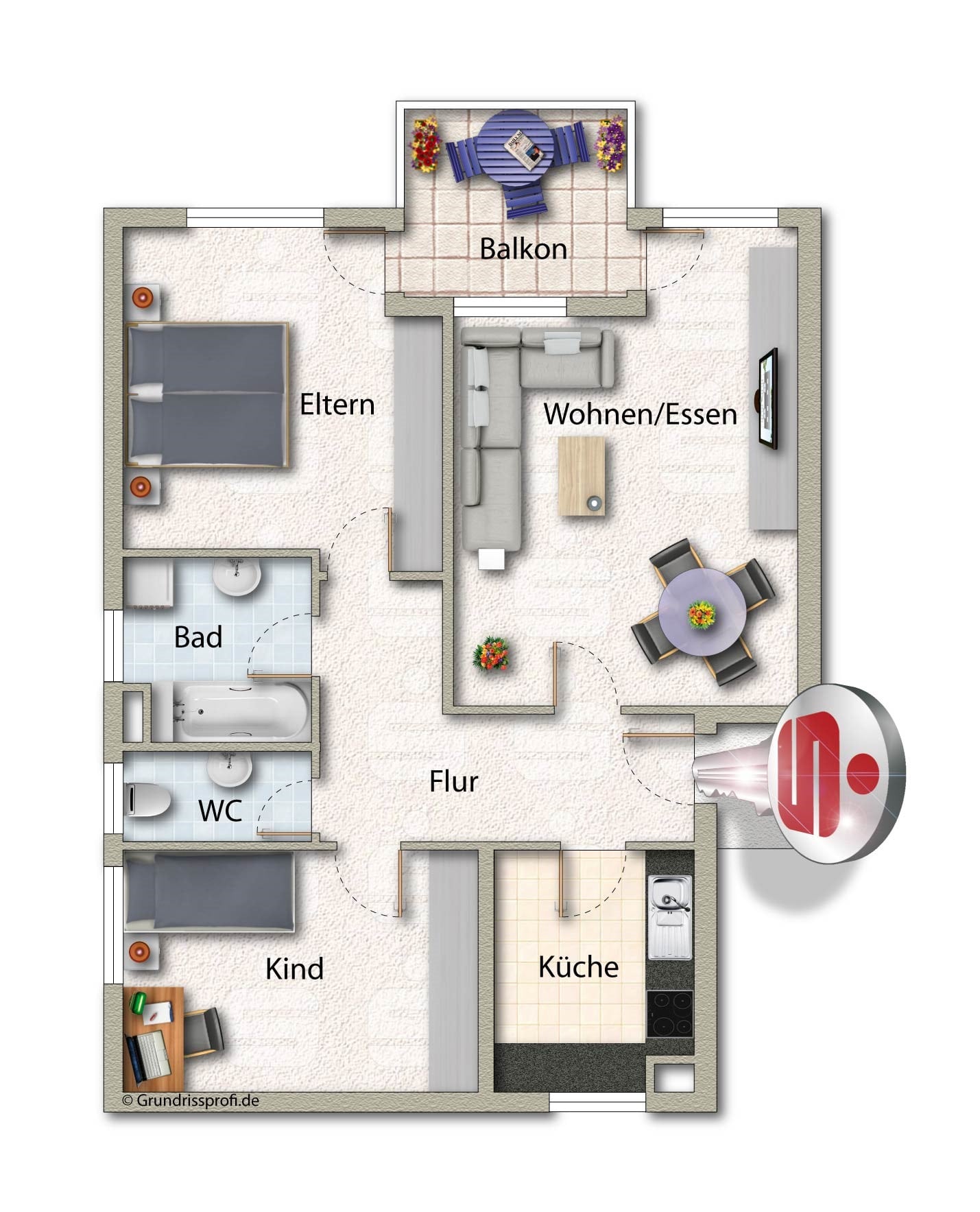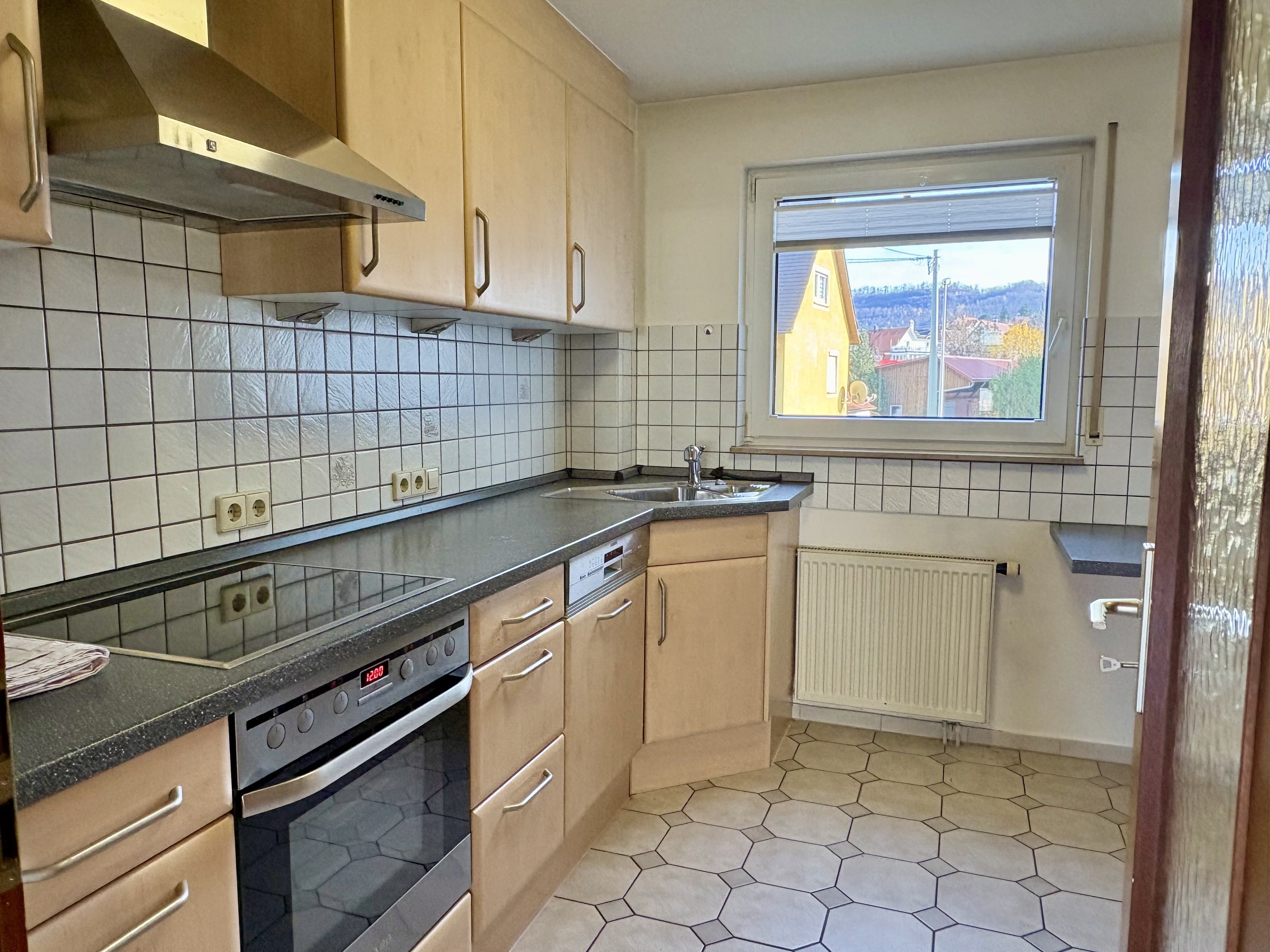 TG-Stellplatz, Einbauküche, Tageslichtbad, Balkon, Keller.