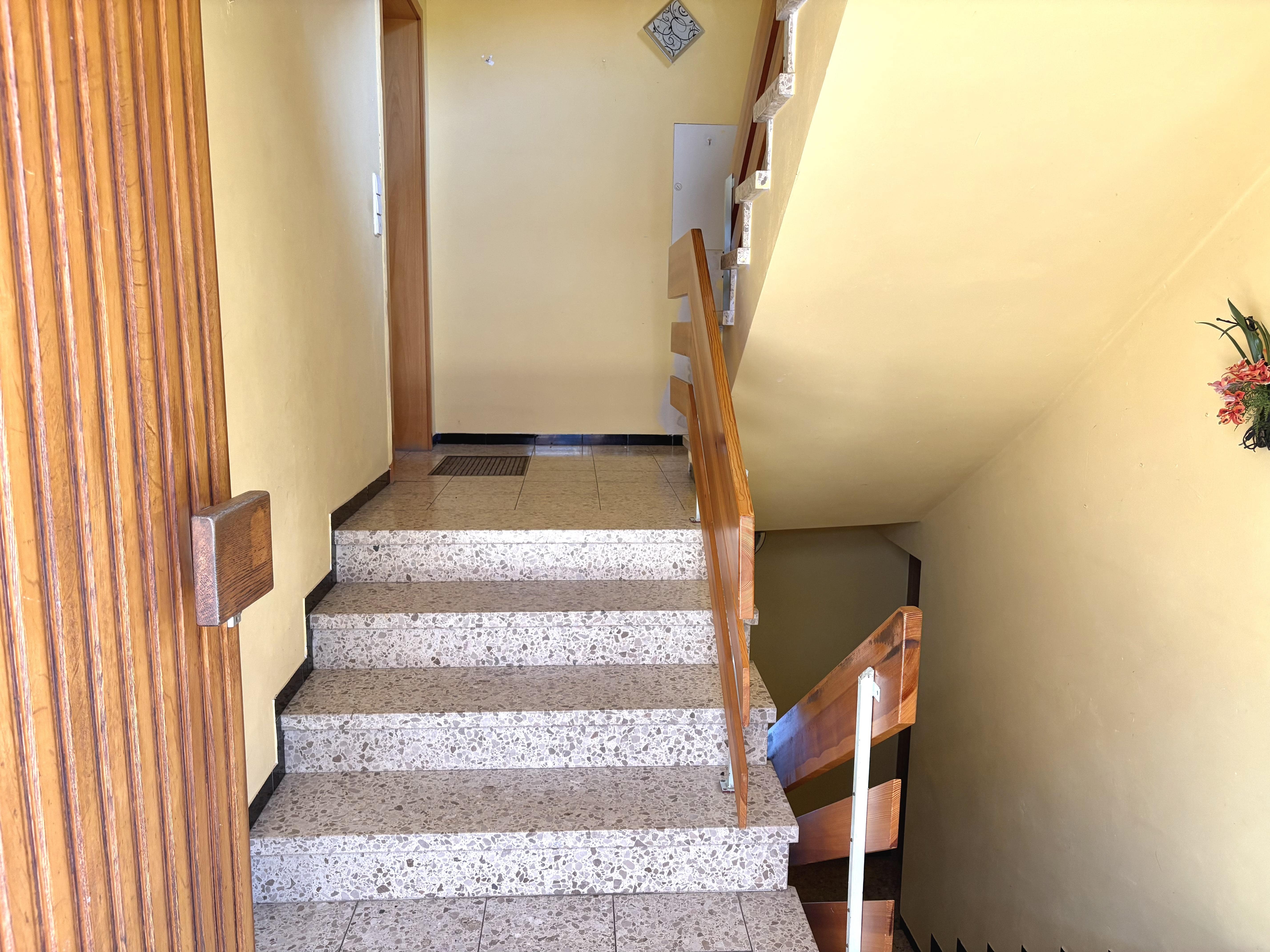 Im Erdgeschoss liegt die ursprüngliche Hauptwohnung. Sie verfügt über 4 Zimmer, ein separates WC und einen sonnigen Balkon. Die Räume sind hell und gut geschnitten. Sie ist bereits leerstehend und bietet sich ideal für Eigennutzer an, die ihre Vorstellungen in die Modernisierung einbringen möchten. Ein zusätzliches Zimmer (ca. 26 m²) im Erdgeschoss ist laut Teilungserklärung der Dachgeschosswohnung zugeordnet. Die DG-Wohnung präsentiert sich in einem sehr gepflegten Zustand und ist aktuell vermietet. Damit erzielt die Immobilie bereits laufende Mieteinnahmen.