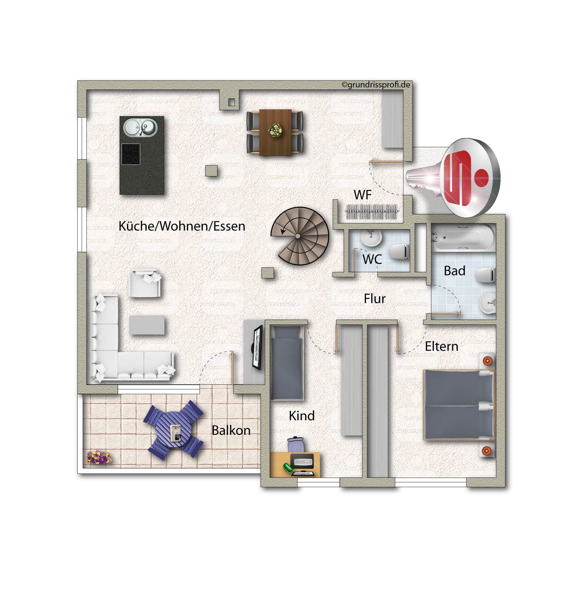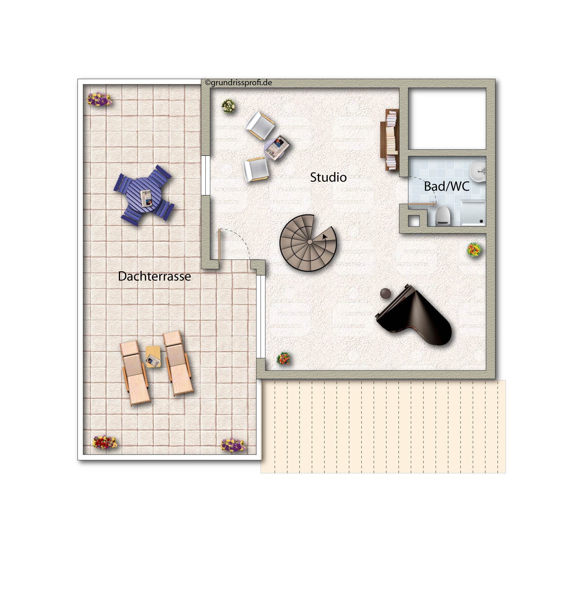 - Außenbereiche: Balkon und Dachterrasse