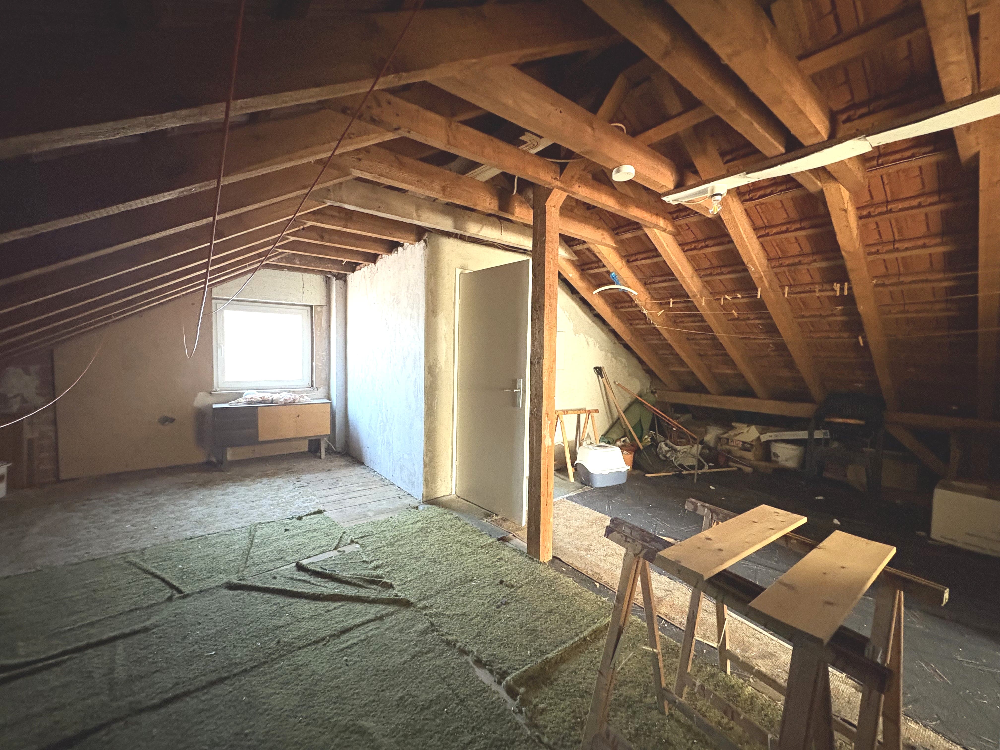 Im Dachgeschoss ist bereits ein Zimmer ausgebaut; zusätzlich besteht weiteres Ausbaupotenzial auf der Bühnenfläche, wodurch zusätzlicher Wohnraum geschaffen werden kann.