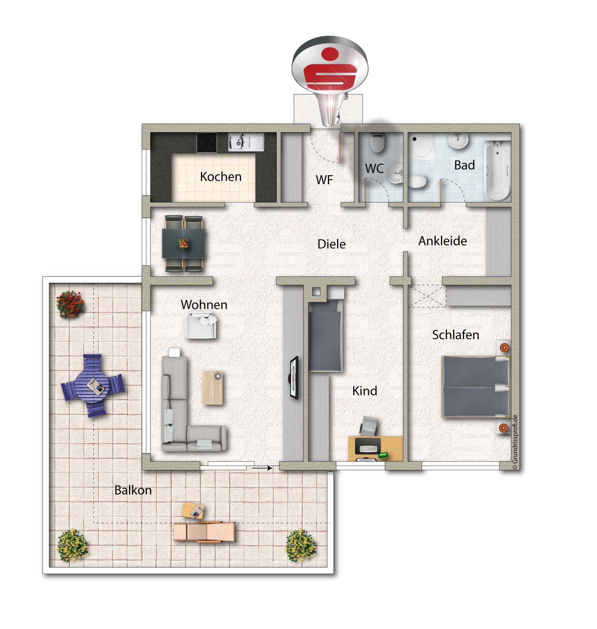Der Balkon erweitert den Wohnbereich ins Freie und lädt an sonnigen Tagen zum Entspannen, Lesen oder Genießen eines Frühstücks an der frischen Luft ein. Hier lässt sich der Alltag wunderbar ausklingen.