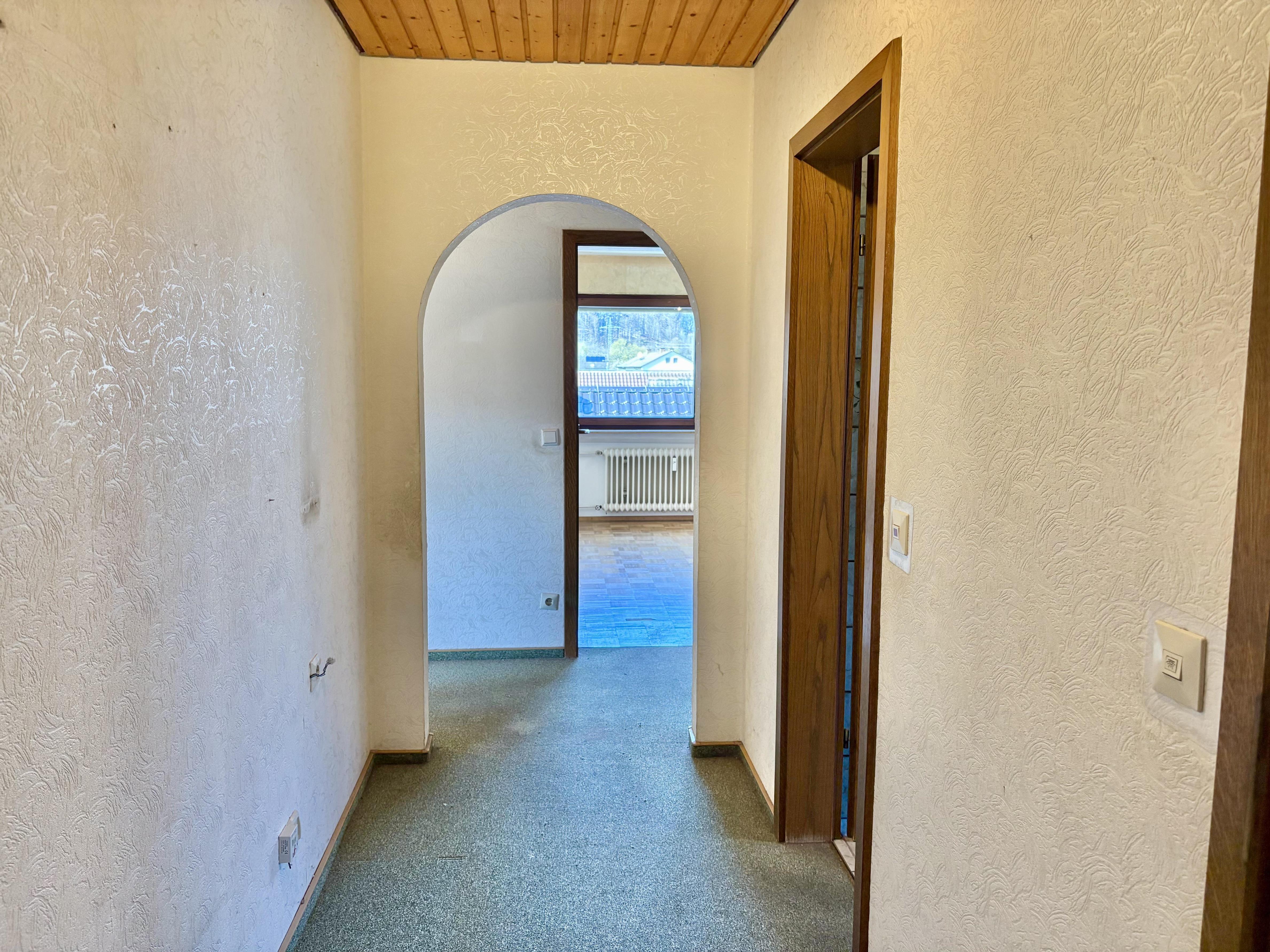 Diese 3,5-Zimmer-Eigentumswohnung im Dachgeschoss eines überschaubaren Mehrfamilienhauses bietet Ihnen eine gute Grundlage, um Ihre eigenen Wohnvorstellungen umzusetzen. Mit einer Wohnfläche von ca. 84 m² überzeugt sie durch eine praktische und funktionale Raumaufteilung. Die Dachterrasse erreichen Sie über das Wohnzimmer. Von hier aus genießen Sie einen schönen Ausblick und haben einen angenehmen Platz für entspannte Stunden im Freien. Die Wohnung befindet sich in einem baujahrtypischen Zustand und sollte nach Ihren Wünschen modernisiert werden. Ein Kellerraum sowie ein Bühnenraum bieten zusätzlichen Stauraum. Zwei Einzelgaragen runden dieses interessante Angebot ab.